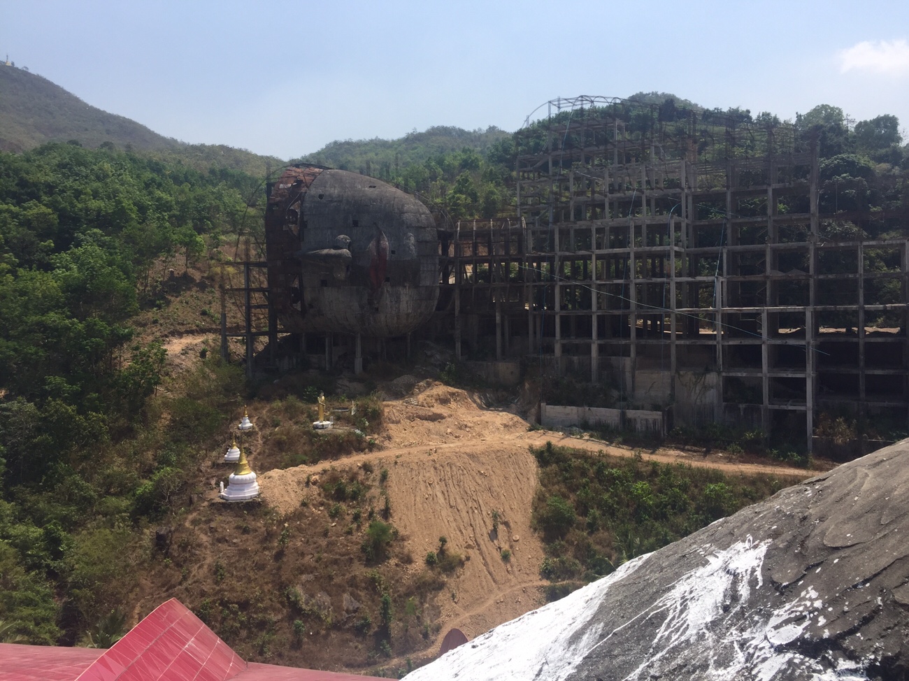 Alle materiaal om bos te rooien wordt aangevoerd en ook weer meegenomen, althans de machines die nog werken. De rest wordt achtergelaten als schroot op de zwaar diesel-vervuilde grond.