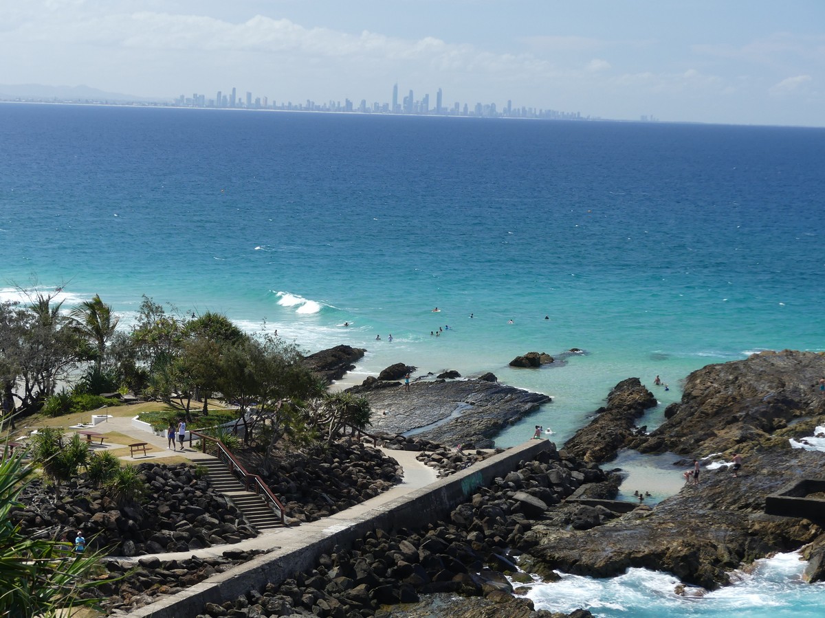Onze Odyssee langs de Whitmondays begint op zijn einde te lopen maar niet getreurd, er komt nog een spannende episode. Eens het ontbijt achter de kiezen en de tanden gepoetst voert de autopilot (u dacht toch niet dat Kapitein Stef één keer zelf heeft gestuurd?!) ons veilig naar het meest zuidelijke van de Molle Islands. We ankeren in een mooie baai waar we de ruines van een resort zien liggen met een bouwvallige jetty. South Molle Island was ooit een bruisend vakantieoord, in de jaren ’50 was de leuze “carefree days and carnival nights”. In het heelal is ’t alle dagen karnaval. Vandaag dus niet meer, cycloon Debbie heeft er een eind aan gemaakt zo’n 2 jaar terug. Wanneer we over het keienstrand naar het werfhekken toelopen dat de bouwvallige bungalows afschermt voor indringers, horen we plots uit een stel luidsprekers een stem die ons waarschuwt “Warning, you have been filmed, a patrol is on its way” met op de achtergrond hondengeblaf en loeiende sirenes. Wij doen het bijna in ons broek, van het lachen. Even verderop is er een pad dat ons omhoog leidt door het National Park. We wandelen door bos achter een duo rare vogels op hoge poten die het vertikken te vliegen. Eens boven op de heuvel worden we getrakteerd op adembenemende vergezichten op de oceaan en de omgevende eilanden en eilandjes. De black boys zijn ook weer van de partij. Een kolonne toeristen met jetskis (lawaaierige quads van de zee) trekken witte sporen op het blauwe water. Onvergetelijk mooie wandeling. We dalen af en komen bij een pad met een verboden toegangbord. Een kolfje naar de hand van Kapitein Stef. We negeren het bord en banen ons een weg doorheen het struikgewas waarna we aan de achterkant van het resort terecht komen, daar waar het golfterrein lag en waar je een tennisballetje kon slaan. Het zwembad ligt er leeg en troosteloos bij. De stem uit de luidspreker dreunt hetzelfde tekstje af, honden blaffen, sirenes loeien, maar de patrouille is in geen uren te bekennen. Sanuk heeft intussen gezelschap van een vriendje gekregen en ontvangt ons met open armen terug.