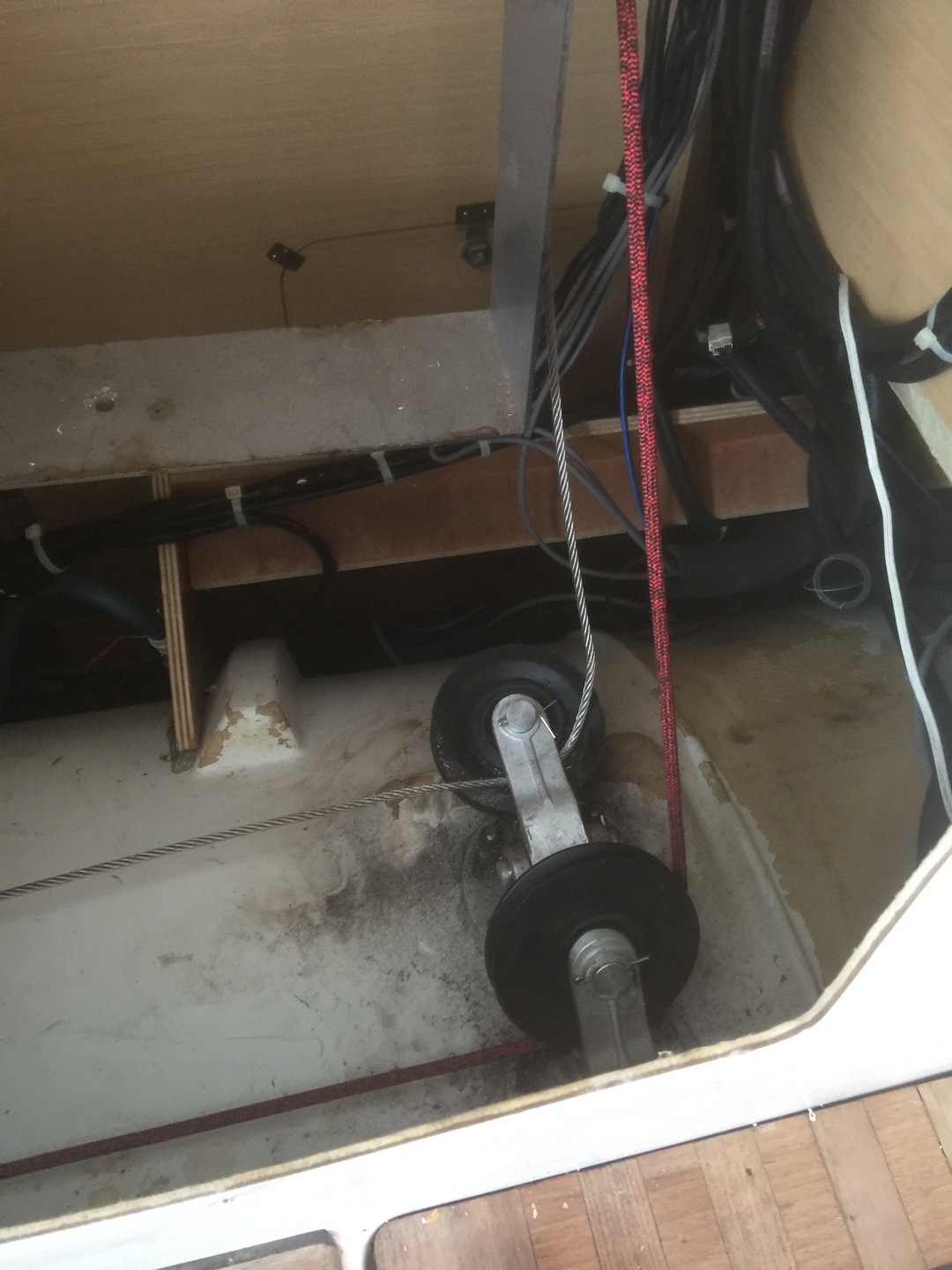 Eens afgemeerd heb ik de oorzaak van de panne snel ontdekt: de stuurkabel van stuurboord was van zijn katrolschijf geraakt en zat klem tussen de katrol en de katrolophanging. Omdat de bakboord kabel in de markiezen was uitgevezeld en geknapt durfde ik daarna de nieuwe kabels niet erg aan te spannen, wat voor teveel speling op de kabel zorgde. Dit heb ik nu verholpen, en daarna was onze Sanuk terug bereid te luisteren naar de bevelen van het stuurwiel. De volgende ochtend zijn we dan vertrokken op een tweede poging. We zijn er goed geraakt en ondertussen zijn we al in Copra Shed Marina, SavuSavu in Fiji.