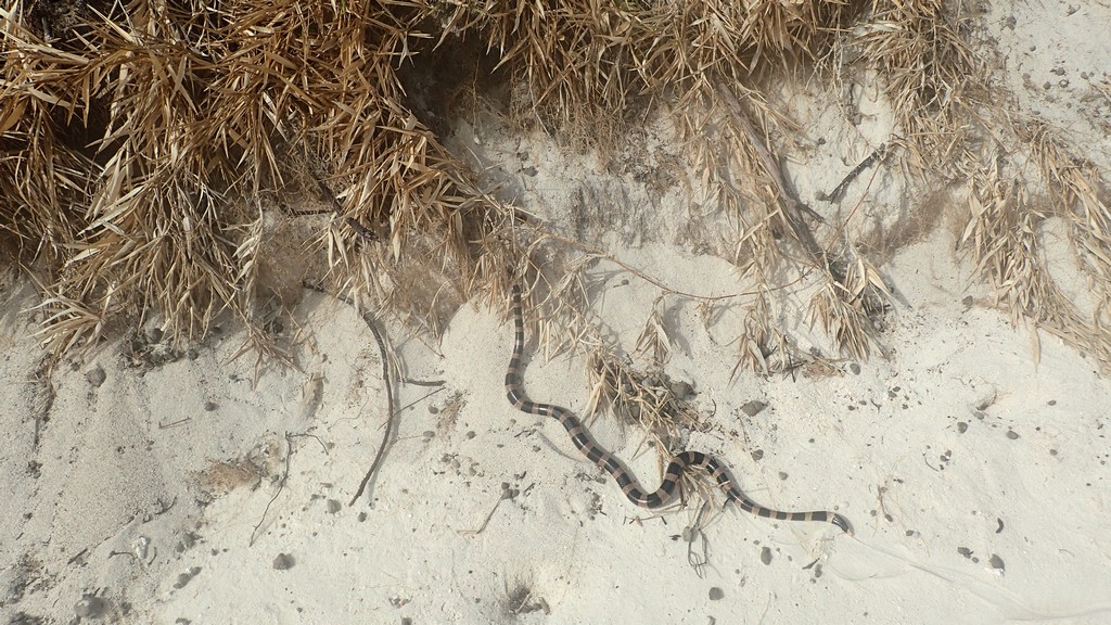 Op een eilandje (Kouaré) in de lagoon van NC zat het vol met zeeslangen. Giftig maar niet gevaarlijk want ze zijn mensenschuw en kunnen hun bek niet ver opensperren… We hadden deze diertjes al tegengekomen tijdens onze duik in Niue.