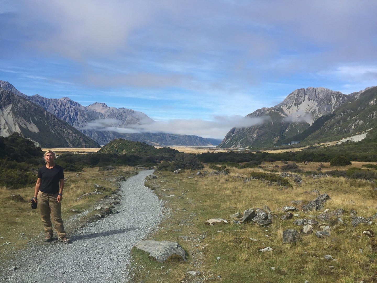 The return walk was not easy as well since it was so steep our legs were shaky. But we enjoyed the scenery so much that we did not care and arrived all happy under blue skies at the campsite. We drank and ate something. Felt stupid not to have prepared this walk better, we had no suncscreen nor a hat with us …we should know better, in the mountains the weather can change rapidly! This walk was definitely one of the highlights of our trip to NZ! We continued our route out of Mt.Cook National Park (also UNESCO world heritage) and went to Tasman glacier view and Tasman Lake…
